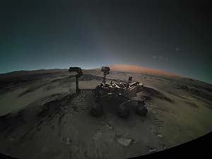 As of Sept. 8, the UW Harry C. Vaughan Planetarium will be available for rental for private events. Max Gilbraith, the planetarium coordinator, is hopeful regular programming will return later in September. Pictured is the planetarium’s new fully controllable virtual Curiosity Rover on a highly detailed Mars. The new software is described as a superadvanced flight simulator for the solar system and cosmos. (UW Planetarium Photo)