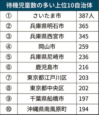 人口が増えている地域などで高まる需要に対策が追いつかない自治体もある。千葉県の船橋市や四街道市、兵庫県の西宮市や尼崎市などは待機児童数が増えた。