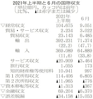 コロナ禍前の19年上期(10兆2587億円の黒字)と比べても増えた。